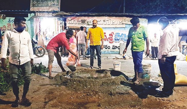 హైదరాబాద్, మార్చి 1 (విశ్వం న్యూస్) : జమ్మికుంట మున్సిపల్ పరిధిలోని స్థానిక బస్టాండ్ వెలకాల గల్లీలో గల సీసీ రోడ్డు పూర్తిగా దెబ్బతింది. గత వారం రోజుల క్రితం ఒక గర్భిణి ద్విచక్ర వాహనంపై ఆ రోడ్డుపై నుండి వెళ్తుండగా ప్రమాదవషాత్తు కిందపడి గాయాల పాలైంది. అలాగే ఈ ప్రదేశంలో ఎందరోప్రమాదానికి గురికాగా ఆ సంఘటనలను ప్రత్యేకంగా చూసిన అక్కడున్న కాలనీ వాసులు జాతీయ కళా రత్న అవార్డు గ్రహీత అంబాల ప్రభాకర్ (ప్రభు) దృష్టికి తీసుకురాగా తక్షణమే స్పందించిన ఆయన కాలనీకి చెందిన వ్యాపారులు ఓల్లాల సదానందం, శ్రావణ్ లతో మాట్లాడి దెబ్బతిన్న సిసి రోడ్డుకు కావలసిన సిమెంట్, కాంక్రీట్ మరియు ఇసుక సమకూర్చారు. సుమారు రెండున్నర గంటల పాటు అక్కడే ఉండి అందరినీ సమన్వయం చేసి దెబ్బతిన్న సిసి రోడ్డు పనులను అక్కడే నిలబడి పూర్తి చూపించిన జాతీయ కళా రత్న అవార్డు గ్రహీత అంబాల ప్రభాకర్ (ప్రభు) పలువురు కృతజ్ఞతలు తెలిపారు. మానవత్వంతో మానవీయ కోణంతో ఆటో ఓనర్స్, డ్రైవర్స్ నాంపల్లి రవీందర్, కనకం అంకుస్, గడ్డం రాజు, పనులను స్వయంగా చేయడాన్ని ప్రభు వారిని అభిందించారు. ఈ కార్యక్రమంలో రాజేశ్వర్ రావు, సురేష్, సంపత్, భాస్కర్, రాజేందర్ తదితరులు పాల్గొన్నారు.