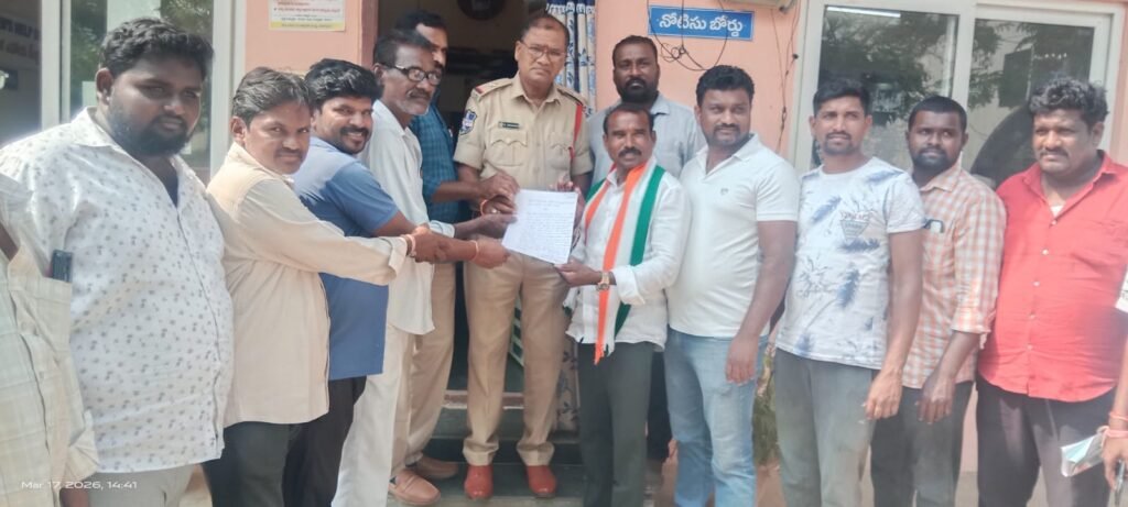 నాగారం, మార్చి 17 (విశ్వం న్యూస్): తుంగతుర్తి ఎమ్మెల్యే మందుల సామెల్ హైదరాబాద్లోని నివాసంపై కోడి గుడ్లు, టమాటాలతో దాడి చేసిన ఘటనపై నాగారం మండల కాంగ్రెస్ పార్టీ నాయకులు తీవ్ర ఆగ్రహం వ్యక్తం చేశారు. మంగళవారం స్థానిక పోలీస్ స్టేషన్లో బీజేపీ, బీజేవైఎం నాయకులపై ఫిర్యాదు చేశారు.