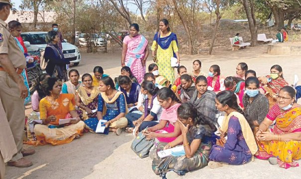 తిమ్మాపూర్, జనవరి 3 (విశ్వం న్యూస్) : కరీంనగర్ జిల్లా తిమ్మాపూర్ మండలంలోని స్థానిక వాగేశ్వరి ఇంజనీరింగ్ కాలేజీలో మంగళవారం టీ.ఎస్.పి.ఎస్.సి, శ్రీ శిశు సంక్షేమ శాఖ, ఉమెన్ అండ్ చైల్డ్ వెల్ఫేర్ ఆఫీసర్స్ అర్హత పరీక్షను నిర్వహిం చారు. ఈ సందర్భంలో పరీక్ష సమయం ఉదయం 10 గంటల నుంచి 12.30 గంటల వరకు ఉండగా, 8.30 నుంచి 9.15 వరకు అభ్యర్థులను అనుమ తిస్తారు. పరీక్ష రాసే అభ్యర్థులు నిర్ణీత సమయ కంటే ఆలస్యంగా వచ్చిన కారణంగా సుమారు 150 మంది విద్యార్థులను పరీక్షకు అనుమతించ కపోవడంతో, కళాశాల ఎదుట విద్యార్థులు పెద్ద ఎత్తున ఆందోళన నిర్వహించారు. ఈ సందర్భంగా పరీక్షకు అనుమతిం చని విద్యార్థులు మాట్లాడుతూ..సరైన సమయానికి పరీక్షా కేంద్రానికి వచ్చిన తమను అను మతించకుం డా పోలీసుల సాయంతో బయటకు నెట్టి వేసినట్లు, బోరున విలపించారు. దీనిపై ప్రభుత్వం చర్యలు తీసుకొని తమకు న్యాయం జరిగేలా చూడాలని ఆవేదన వ్యక్తం చేశారు. వెంటనే పోలీసులు జోక్యం చేసుకొని సర్ది చెప్పారు.