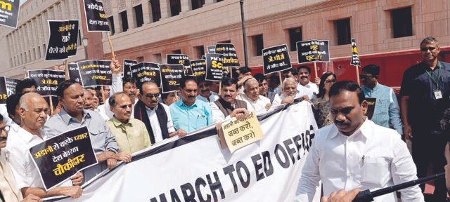 హైదరాబాద్, మార్చి 15 (విశ్వం న్యూస్) : అదానీ ఆర్థిక నేరాలపై సమగ్ర విచారణగాను సంయుక్త పార్లమెంటరీ సంఘాన్ని (జేపీసీ) నియమించాలంటూ ప్రతిపక్షాలు మూడో రోజు కూడా పార్లమెంటు సమావేశాలను బహిష్కరించాయి. తీవ్ర ఆర్థిక నేరాలకు పాల్పడిన అదానీని కేంద్ర ప్రభుత్వం వెనుకేసుకు రావడాన్ని, జేపీసీ వేయకుండా మొండి వైఖరి అవలంభించడాన్ని నిరసిస్తూ బీఆర్ఎస్, కాంగ్రెస్, డీఎంకే, టీఎంసీ ఎండీఎంకే తదితర పక్షాల ఎంపీలు ఉభయ సభల సమావేశాలను బహిష్కరించి పార్లమెంటు ఆవరణలోని గాంధీ విగ్రహం వద్ద ఆందోళనకు దిగారు. ఈ ఆందోళన కార్యక్రమంలో రాజ్యసభ సభ్యులు వద్దిరాజు రవిచంద్ర, బీఆర్ఎస్ పార్లమెంటరీ పార్టీ నేత కే.కేశవరావు, లోకసభలో బీఆర్ఎస్ పక్ష నాయకులు నామా నాగేశ్వరరావు, ఎంపీలు సంతోష్ కుమార్, దీవకొండ దామోదర్ రావు, పీ.రాములు, కే.ఆర్.సురేష్ రెడ్డి, బీ.బీ.పాటిల్, కొత్త ప్రభాకర్ రెడ్డి, బడుగుల లింగయ్య యాదవ్, రంజిత్ రెడ్డి, పసునూరి దయాకర్, కవిత, బోర్లకుంట వెంకటేష్ నేతకాని, మన్నె శ్రీనివాస్ రెడ్డి, జైరాం రమేష్ (కాంగ్రెస్), వై.గోపాలస్వామి(ఎండీఎంకే) తదితరులతో కలిసి పాల్గొన్నారు. ఈ సందర్భంగా వారు “అదానీ వ్యవహారంపై సమగ్ర విచారణకు జేపీసీని నియమించాలని, సీబీఐ,ఈడీలను దుర్వినియోగం చేయడాన్ని వెంటనే ఆపేయాలి, కేంద్ర ప్రభుత్వం తన మొండి వైఖరిని విడనాడాలని, ‘మోడీ నిరంకుశ, నియంతృత్వ విధానాలను విడనాడాలంటూ’ పెద్ద పెట్టున నినాదాలు చేశారు.