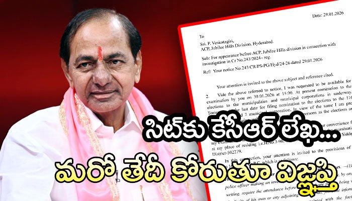 హైదరాబాద్, జనవరి 29, 2026 (విశ్వం న్యూస్) : సిట్ నోటీసులకు బదులిచ్చిన బీఆర్ఎస్ అధినేత, తెలంగాణ రాష్ట్ర తొలి ముఖ్యమంత్రి కల్వకుంట్ల చంద్రశేఖర్ రావు (కేసీఆర్) మునిసిపల్ ఎన్నికల నేపథ్యంలో సిట్ ముందు హాజరుకాలేనని స్పష్టం చేశారు.