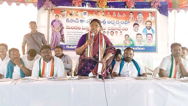 గోవిందరావుపేట, ఏప్రిల్ 4 (విశ్వం న్యూస్) : కేంద్ర రాష్ట్ర ప్రభుత్వాలు రైతుల ప్రయోజనాలను దెబ్బతీసే తప్పుడు విధానాలను వెంటనే విరమించుకోవాలని ములుగు నియోజకవర్గ ఎమ్మెల్యే దానసరి సీతక్క అన్నారు . మంగళవారం పస్రా గ్రామంలోని కాంగ్రెస్ పార్టీ స్థల ఆవరణ యందు కిసాన్ సెల్ జిల్లా ప్రధాన కార్యదర్శి జంపాల ప్రభాకర్ అధ్యక్షతన కిసాన్ సెల్ మండల విస్తృత సమావేశం జరిగింది. ఈ సమావేశానికి ముఖ్య అతిధిగా ఏఐసీసీ జాతీయ మహిళ ప్రధాన కార్యదర్శి ములుగు శాసనసభ సభ్యురాలు దనసరి సీతక్క హాజరై మాట్లాడుతూ దేశానికి అన్నం పెట్టే రైతన్నకు కేంద్ర, రాష్ట్ర ప్రభుత్వాలు సున్నం పడుతున్నాయని ఆమె ధ్వజమెత్తారు. రైతులకు 24 గంటల ఉచిత కరెంటు రైతులకు ఏక కాలంలో లక్ష రూపాయల ఋణమాఫీ ఏమైందని ఆమె ప్రశ్నించారు. రైతులకు శాశ్వత పట్టాలు అందిస్తాం అన్న హామీ ఏమైందని ఆమె ప్రభుత్వాన్ని నిలదీశారు, వర్షాల వలన దెబ్బతిన్న పంటలకు నష్టంపరిహారం వెంటనే ఇవ్వాలని డిమాండ్ చేశారు .
