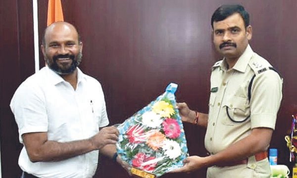 కరీంనగర్ నూతన సి.పి ని కలిసిన జాతీయ కళారత్న అవార్డు గ్రహీత అంబాల ప్రభాకర్ (ప్రభు)