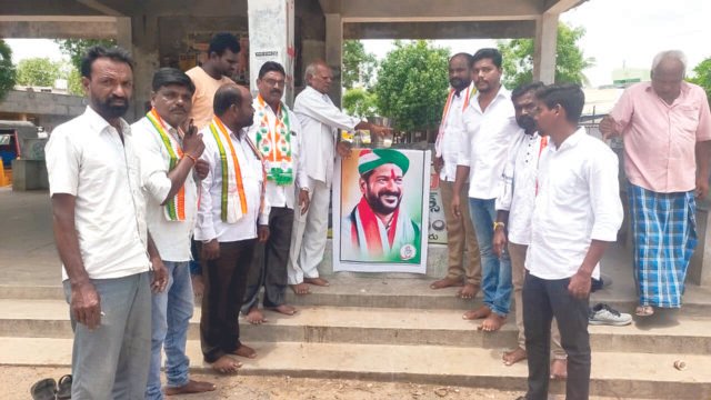వీణవంక, జూలై 14 (విశ్వం న్యూస్) : వీణవంక మండలం కేంద్రంలో యూత్ కాంగ్రెస్ ఆధ్వర్యంలో టీపీసీసీ అధ్యక్షులు రేవంత్ రెడ్డికి పాలాభిషేకం చేసిన నాయకులు. నిన్న బీజేపీ బి టీం బీఆర్ఎస్ నాయకులు రేవంత్ రెడ్డి దిష్టి బొమ్మ ను దగ్ధం చేయడాని కండిస్తూ కాంగ్రెస్ పార్టీ రైతుల పట్ల చిత్తశుద్ధి తో పనీ చేస్తుందని ఇచ్చిన ప్రతి హామీని నెరవేరుస్తుందని నాయకులు అన్నారు.