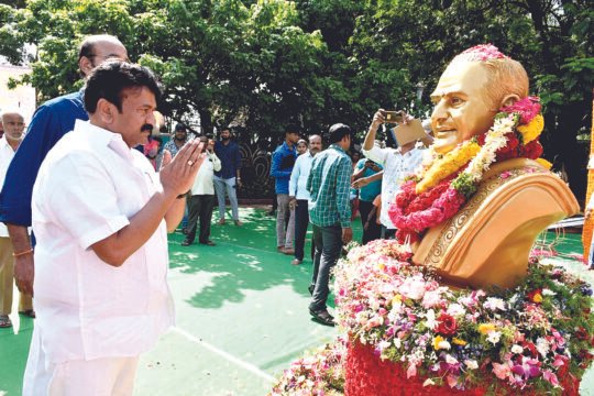 హైదరాబాద్, మే 28 (విశ్వం న్యూస్) : చరిత్రలో ఎప్పటికీ నిలిచిపోయే గొప్ప మహనీయుడు…మకుటం లేని మహారాజు శ్రీ నందమూరి తారక రామారావు అని రాష్ట్ర పశుసంవర్ధక, మత్స్య, పాడి పరిశ్రమల అభివృద్ధి, సినిమాటోగ్రఫీ శాఖల మంత్రి తలసాని శ్రీనివాస్ యాదవ్ అన్నారు. ఎన్టీఆర్ శతజయంతి సందర్బంగా ఆదివారం ట్యాంక్ బండ్ వద్ద గల ఎన్టీఆర్ ఘాట్ లోని ఆయన సమాది వద్ద పూలమాలలు వేసి నివాళులు అర్పించారు.