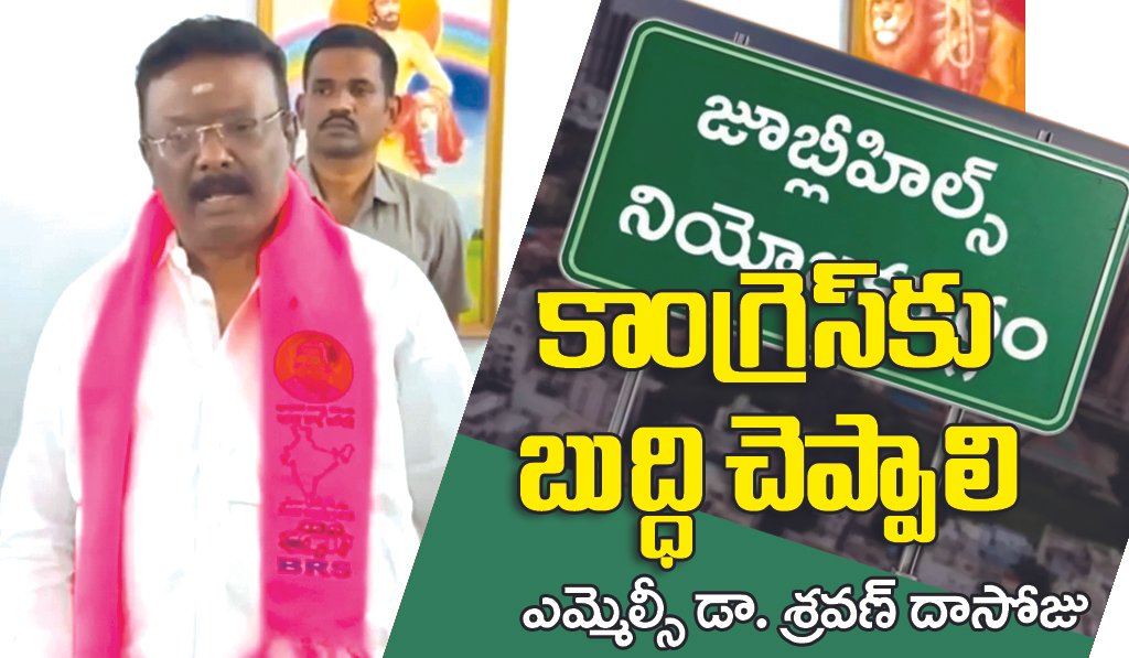 హైదరాబాద్, అక్టోబర్ 22 (విశ్వం న్యూస్) : జూబ్లీహిల్స్ ఉపఎన్నికల్లో కాంగ్రెస్కు బుద్ధి చెప్పాల్సిన సమయం వచ్చిందని ఎమ్మెల్సీ డా. శ్రవణ్ దాసోజు పేర్కొన్నారు. జూబ్లీహిల్స్ నియోజకవర్గంలోని షేక్పేట్ డివిజన్ బిజెర్నగర్ హరిజన భవన్లో దళిత సంఘ నాయకులు శ్రీ సదానందం ఆధ్వర్యంలో జరిగిన సమావేశంలో మాజీ మంత్రి, ఎమ్మెల్యే వేముల ప్రశాంత్ రెడ్డి, మాజీ ఐపీఎస్ అధికారి ఆర్.ఎస్. ప్రవీణ్కుమార్, బీఆర్ఎస్ నాయకులు నందికంటి శ్రీధర్, షేక్పేట్ డివిజన్ అధ్యక్షుడు దుర్గం ప్రదీప్ తదితరులు పాల్గొన్నారు.